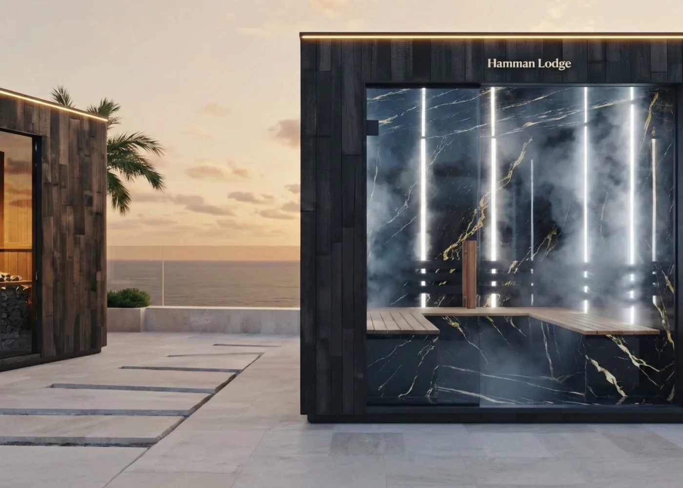 Marbres, bois nobles, éclairages LED architecturaux et équipements premium.